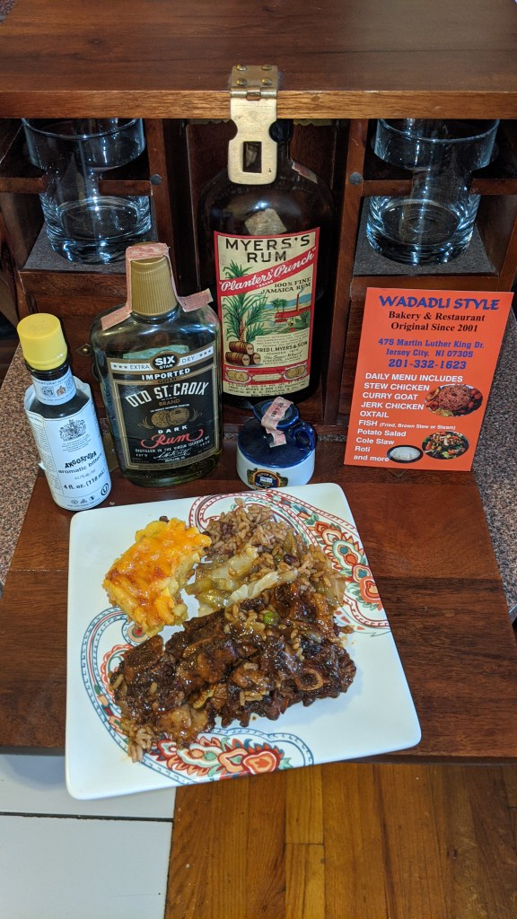 It all started coming together in my head. A week before the first case of COVID was confirmed in America, I called Henry’s Carribean Bakery in Jersey City. My plan in February was to come by with my 1957 Myers’s, the new Hee Joy single barrel release from Jamaica, and perhaps another dusty from The Whiskey Exchange. I called in advance about bringing wine and alcohol to Henry’s, which was allowed.